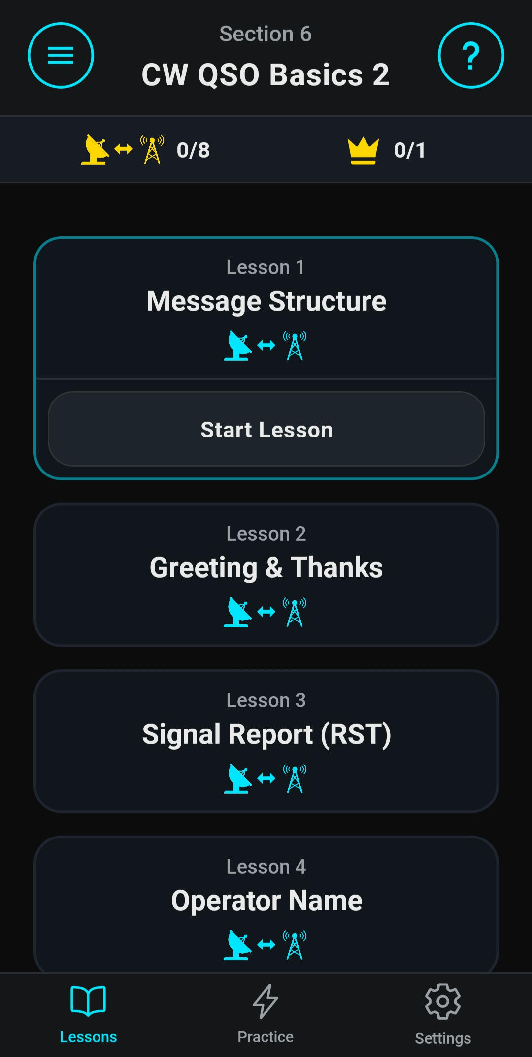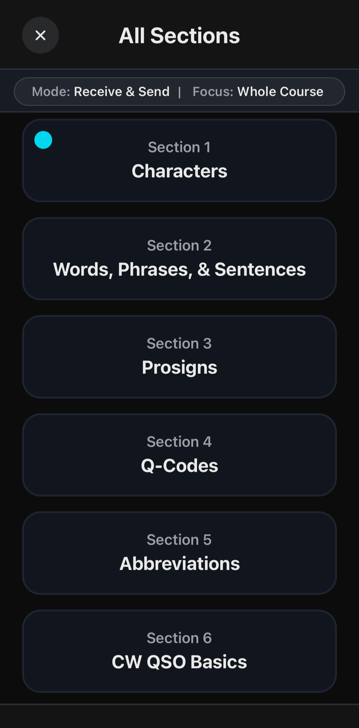 CW QSO Basics ties everything together with common exchange-style sequences and mixed receive/send practice.